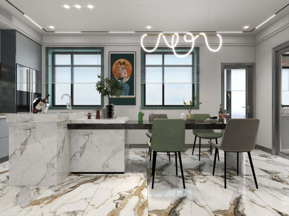 Размеры 60x120 см делают этот керамогранит универсальным решением для любых помещений. Широкие панели позволяют сократить количество швов, что не только упрощает укладку, но и создает эффект единой поверхности, визуально увеличивая пространство.