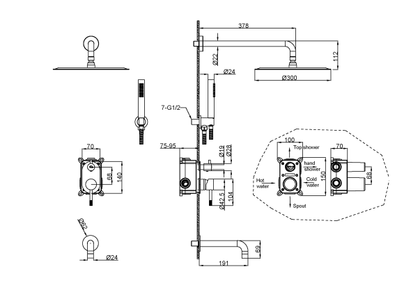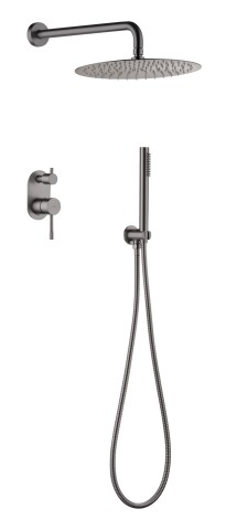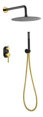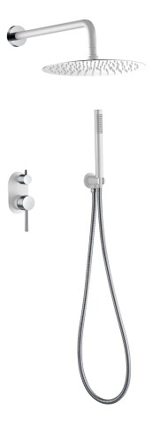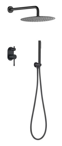 В комплект входит лейка, верхний душ, шланг и штанга